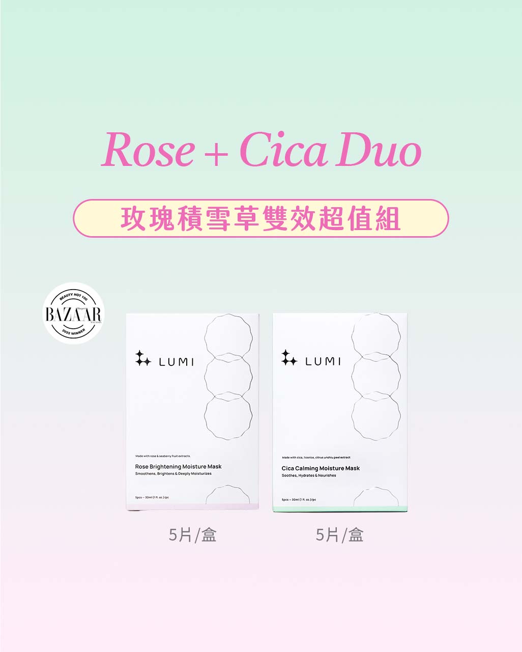 LUMI 精選兩大得獎面膜,一片舒緩修護 × 一片補水亮白,讓肌膚在乾燥中依舊水嫩透亮!為你打造從修護到亮白的完整保養方案。